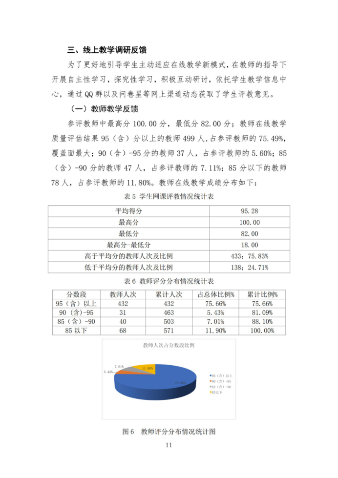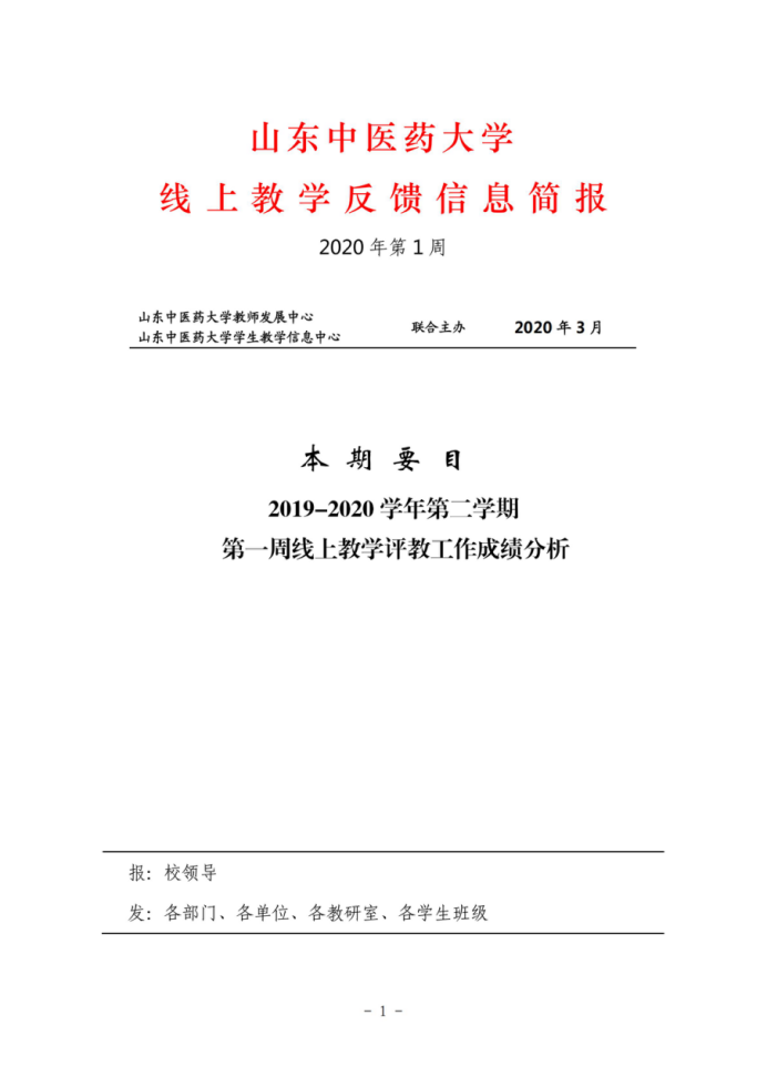 教学质量信息简报第一期(2019-2020学年第二学期第一周线上教学评教工作成绩分析)