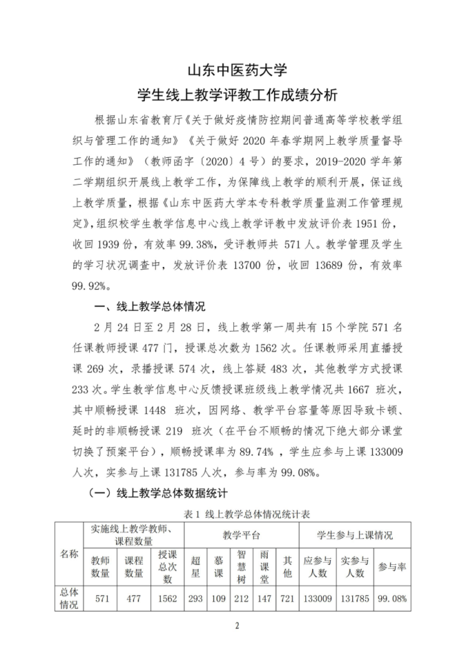 教学质量信息简报第二期(2019-2020学年第二学期第二周线上教学评教工作成绩分析)
