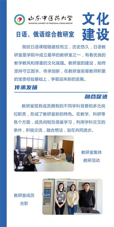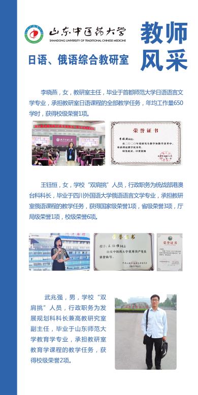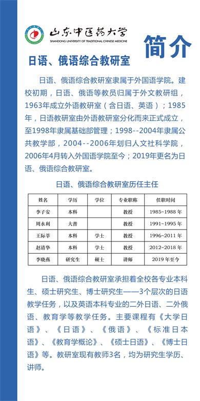 整合日语、俄语师资力量,将俄语课程纳入其中,更名为日语、俄语综合教研室。