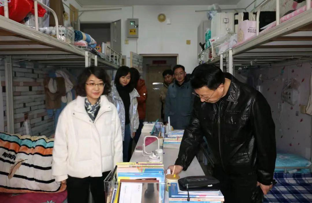 党委书记苏娜娜、院长李茂峰、党委副书记田原、副院长李成华带领各年级辅导员,再次深入学生宿舍开展地毯式安全卫生专项检查。