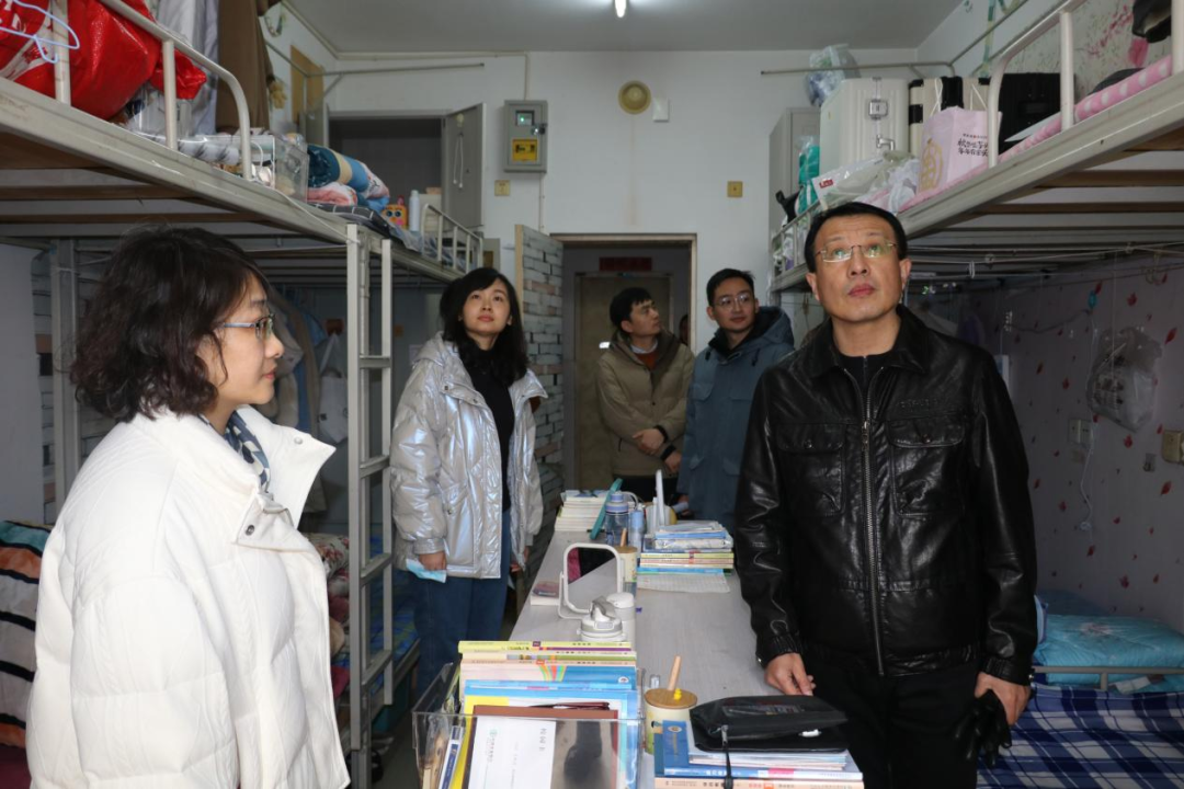 在检查过程中,苏娜娜指出宿舍是学生学习生活的重要场所,是落实立德树人根本任务、开展三全育人的重要阵地。要加强育人阵地建设,融入党建、环境卫生、心理健康等核心要素,提前谋划布局,积极响应学校一站式学生社区建设;要建立宿舍管理长效机制,制定明确的规章制度、建立责任体系、加强日常监督与检查、建立良性反馈与沟通渠道,以确保宿舍安全、卫生和秩序长期稳定;要坚持问题导向,及时识别问题、分析问题、制定措施、持续改进,以确保宿舍的安全和卫生问题得到及时发现和有效解决,为学生们创造一个更加安全、舒适的居住环境。