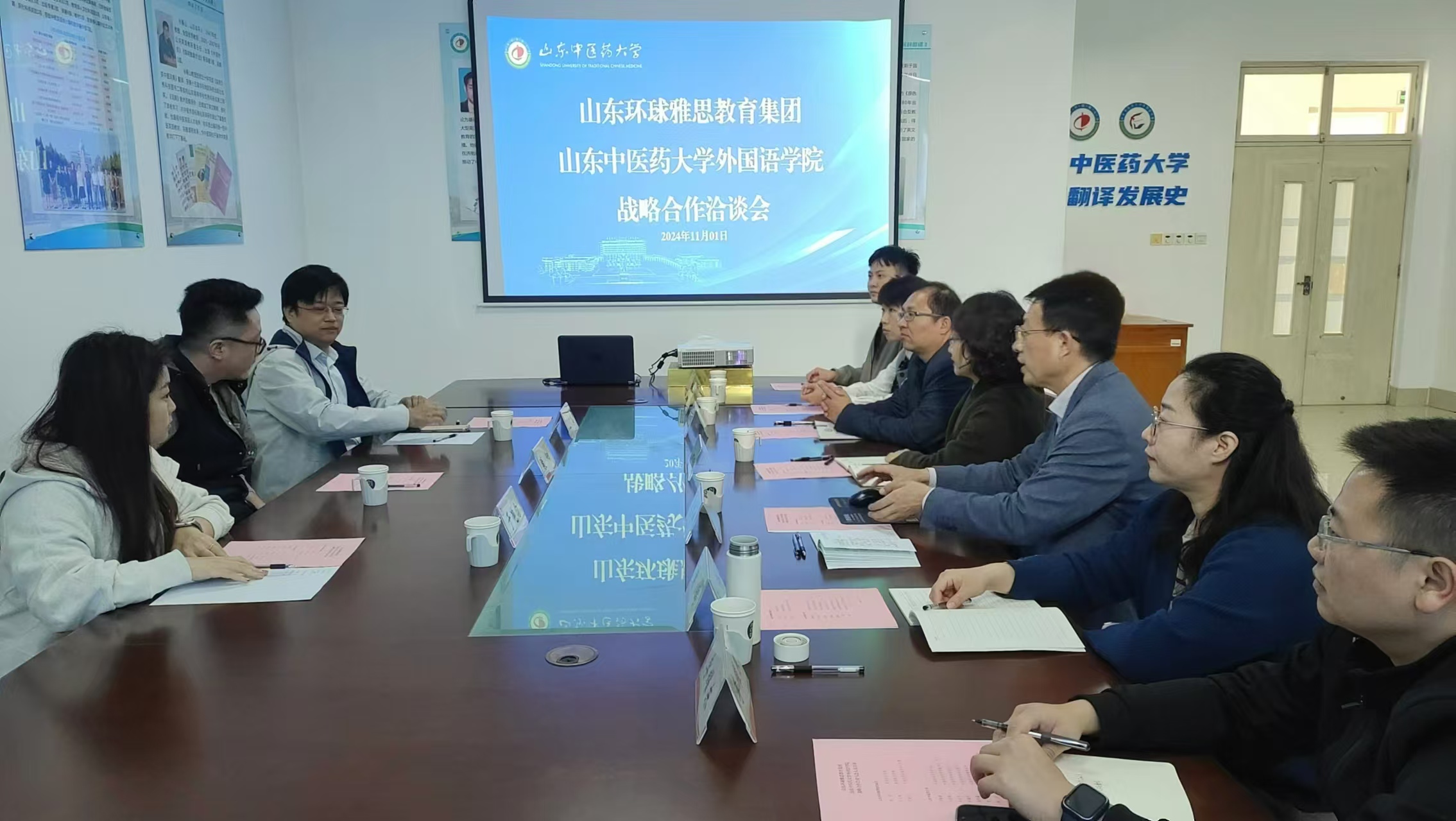 11月1日上午,山东环球雅思国际教育集团副总经理裴阳一行来天美传媒