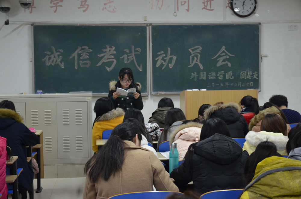 于2015年12月15日至29日之间开展了诚信教育系列活动:首先,各个班级利用晚点名时间召开了诚信教育考前动员大会,组织学生学习了《国家教育考试违规处理办法》、《天美传媒