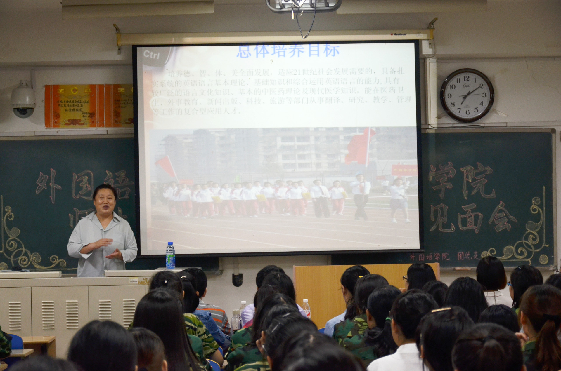 副院长孙慧老师对2015级新生进行了系统的专业入学教育,她从英语专业总体培养目标、基本培养要求、培养规格、主要课程等四个方面做了详细介绍。讲座结束后,同学们就大学期间的专业学习与孙院长进行了积极交流与探讨。