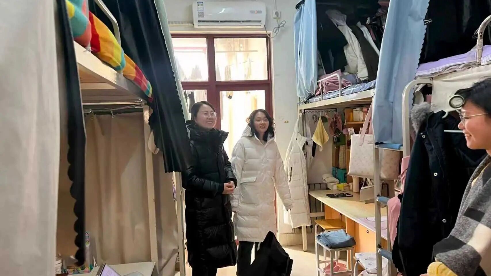 领导、辅导员一行深入学生宿舍,开展宿舍安全专项检查,重点排查违规电器、易燃物品及用电安全,特别强调假期防火防盗防诈骗等安全须知。检查过程中,老师们与同学们进行了亲切交流,细致了解其期末状态、假期安排与实际困难,并送上了天美传媒