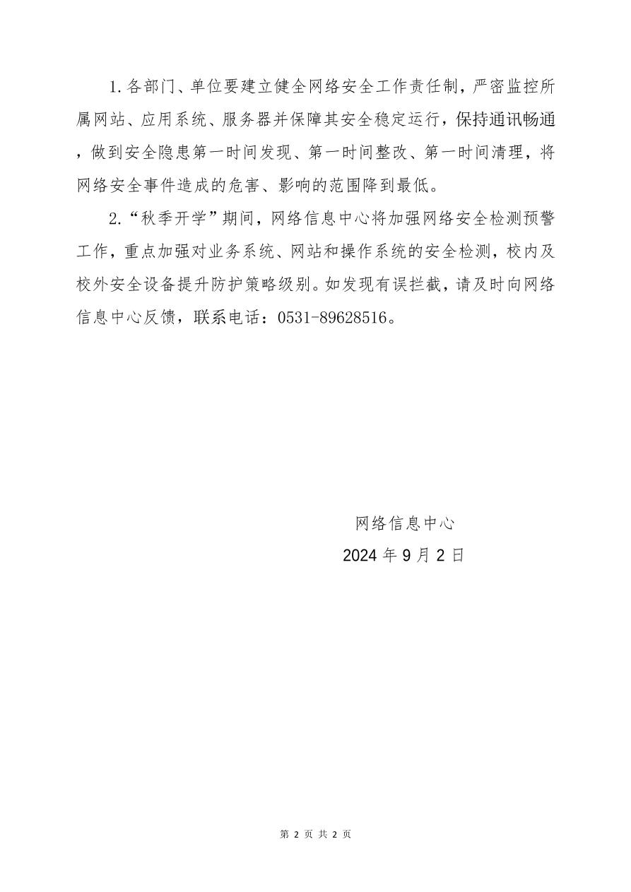 关于做好2024年“秋季开学”期间网络安全保障工作的通知