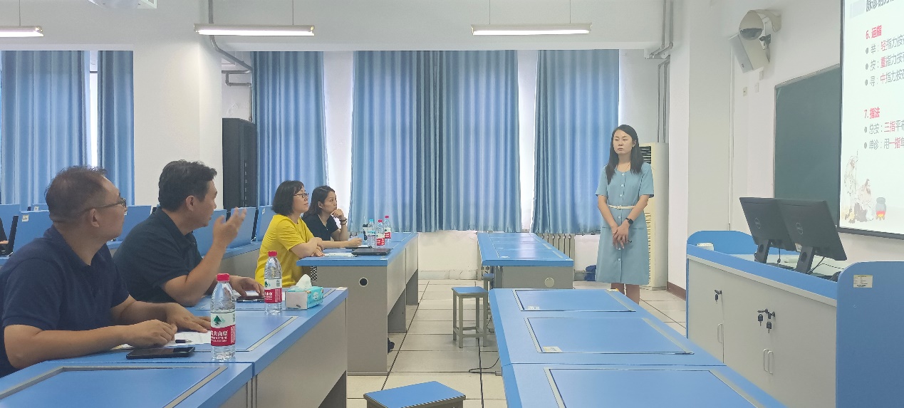 2023年新进教师田琪、李智唯、蒲桦鑫先后做教学展示。任健对新进教师的教学理念、教学内容、教学设计、教学反思等方面做了详细点评,为新进教师的职业发展提出建议。王晓燕在教学过程、授课选题、板书设计、内容呈现等方面为新进教师做具体指导。孔冉冉从教学姿态、语音语调、师生互动、课件制作等方面提出建议。李成华做总结发言,感谢三位导师在培养新进教师中付出的努力,对新进教师的成长提出要求和希望。