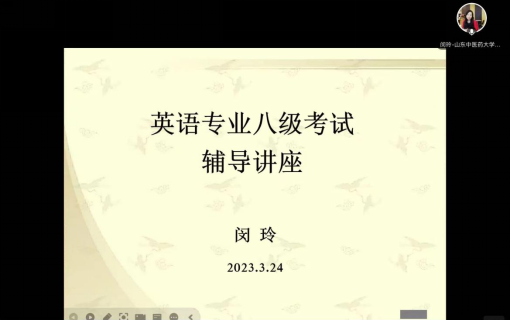 于3月24日组织2023年英语专业八级考试辅导讲座。翻译教研室闵玲教授对专八考生进行具体辅导。