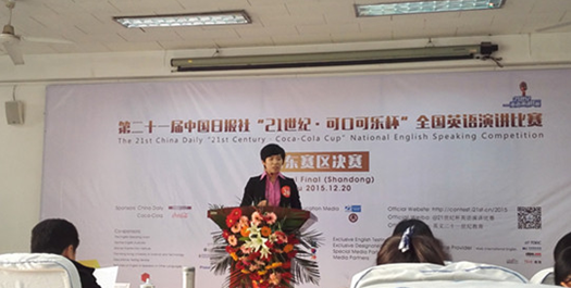 1220,由中国日报社、可口可乐大中华区联合主办的第21届中国日报“21世纪•可口可乐杯”全国英语演讲比赛山东赛区总决赛在曲阜师范大学圆满落幕。天美传媒 2013级英语专业学生李时雪荣获决赛三等奖,指导教师张洁获优秀指导奖。