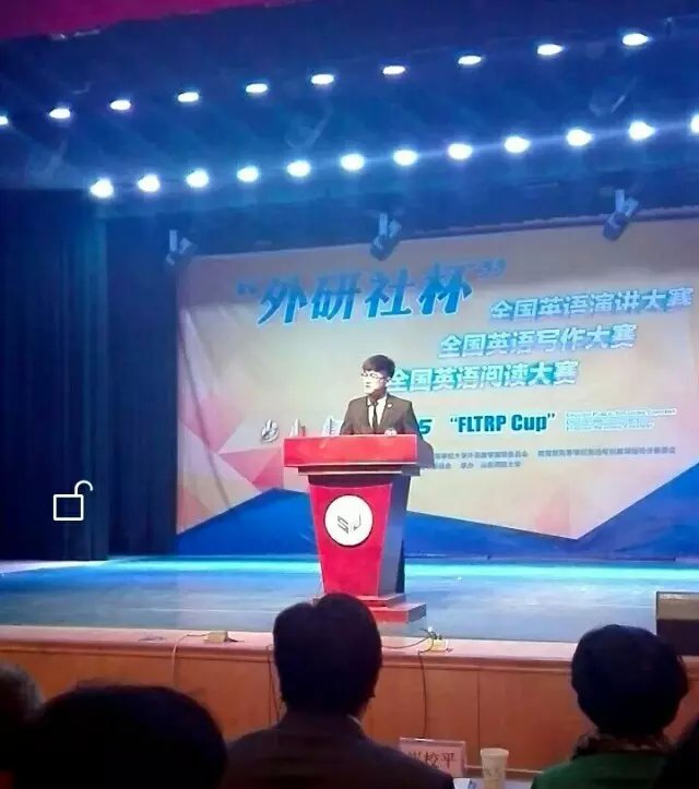 201510242015“外研社杯”全国英语演讲大赛山东赛区复赛在山东师范大学音乐厅成功举行。天美传媒 教师曲悃指导的理工天美传媒 2014级学生罗岸峰代表学校参赛,并获得山东赛区三等奖。
