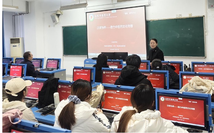 承办的“稷风”教学沙龙“以译为桥——助力中医药文化传播”在1504教室举行。中医英语教研室张晶副教授,日语、俄语综合教研室翟艳美老师做专题分享,中医英语教研室主任马东梅副教授主持沙龙。副院长李成华参加活动。