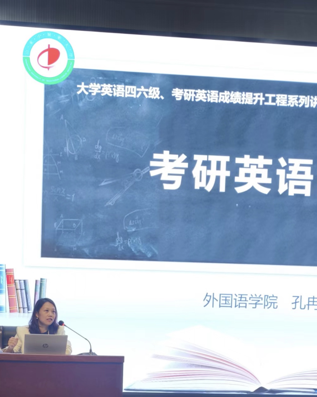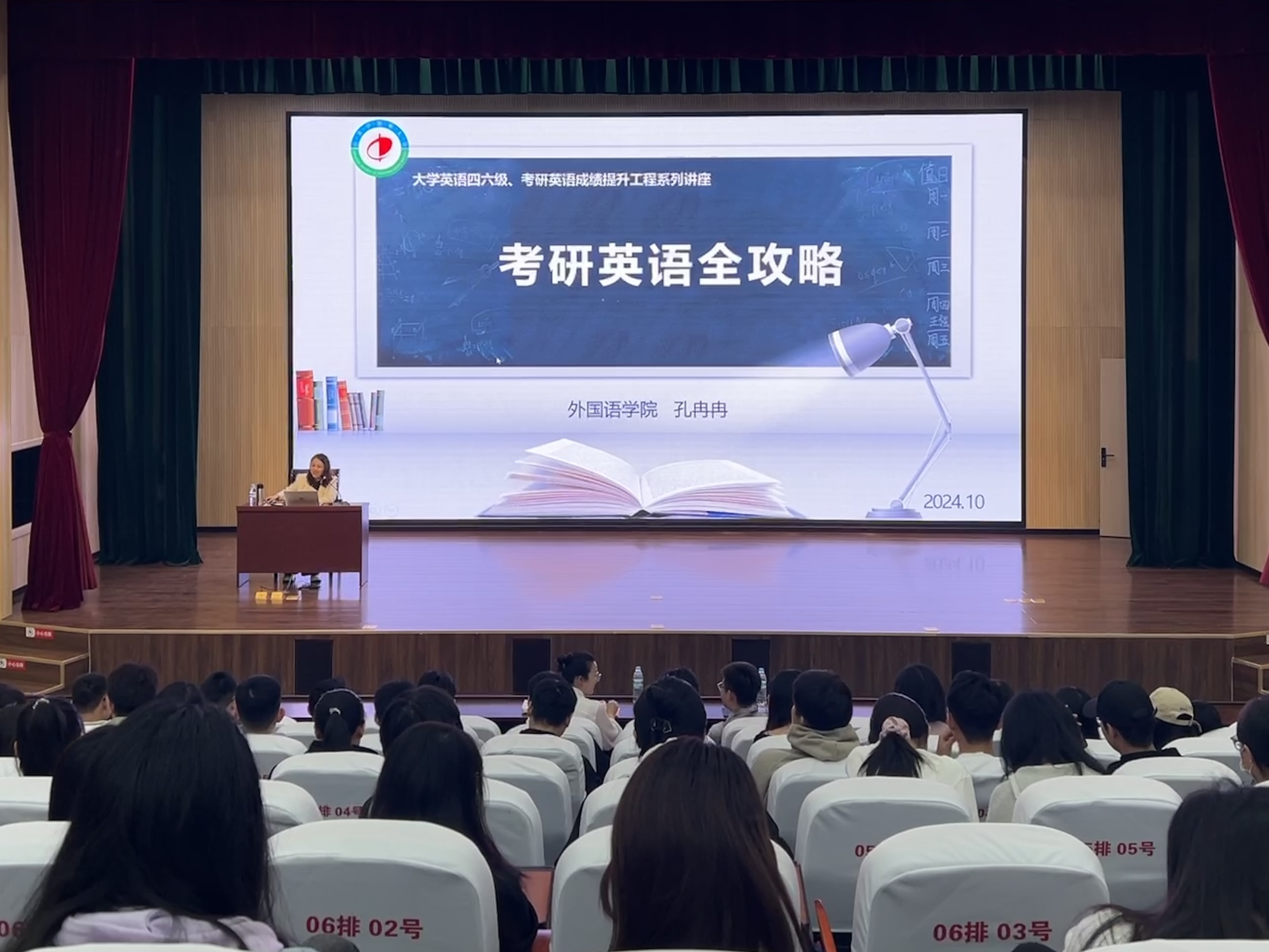 大学英语教研二室主任孔冉冉副教授在国际医学中心校区教学楼三楼报告厅作考研英语复习指导讲座。