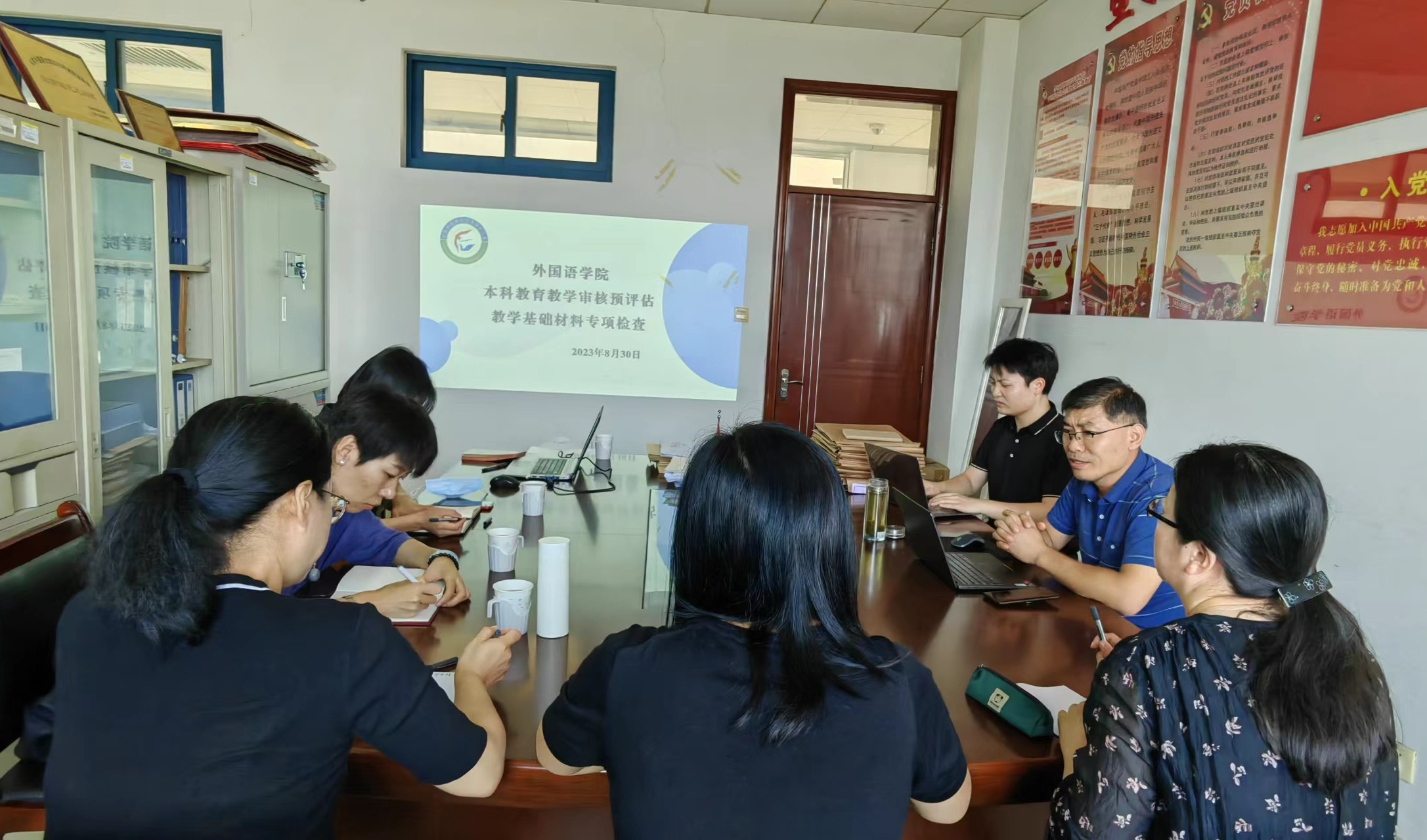 专家组对课程教学大纲、教学设计(教案)、四个学期近20门课程的试卷、专业剖析材料及PPT、2022届和2023届毕业论文、英语专业人才培养方案、实习见习大纲、实习手册、实习见习报告等逐一进行检查,并制定《天美传媒