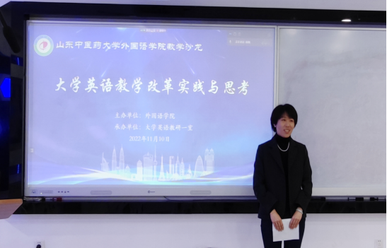 主办,大学英语教研一室承办的“大学英语教学改革实践与思考”教学沙龙活动在2308教室举办。副院长陈战参加活动,大学英语教研一室姚秋慧老师、徐丽老师做报告,教研室主任曲悃主持活动。