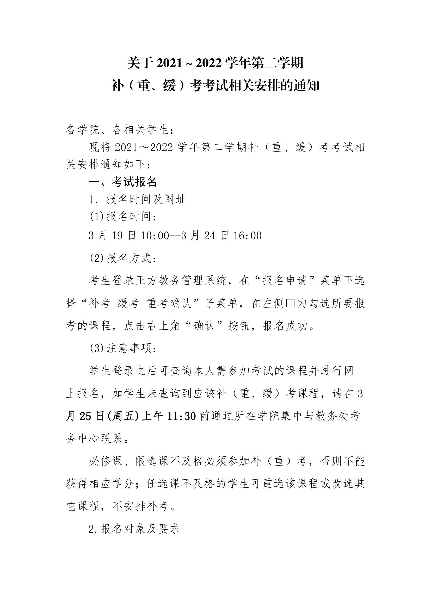 关于2021~2022学年第二学期补(重、缓)考考试安排的通知
