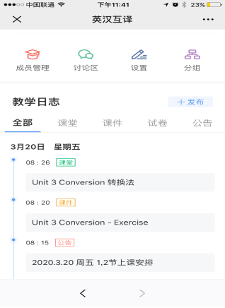 以《英汉互译》的在线教学为例,落实教学效果主要从三个时间段抓起。首先是课前预习环节。不仅是课件,同时还会有大量文献,通过阅读文献思考布置的相关问题,所以在课前学生通过学习已经对要掌握的教学内容学习了50%。学生是否学习了,主要检查手段是观察在小组讨论、案例分析、译文评析、在线趣味翻译比赛等活动中,学生表现出的的积极性和参与度。其次,在线讲课环节。主要解决教学内容中最难理解和最重要的内容,这部分每次课大约会有60分钟时间安排,剩余时间一是检查课前学习内容,二是随机解决课堂中的新的问题。最后,课后作业环节。针对教学内容中最重要的部分,设计作业,作业完成后主要是上传到雨课堂平台上,通过检查课后作业的完成情况综合判断每一位学生的学习情况。