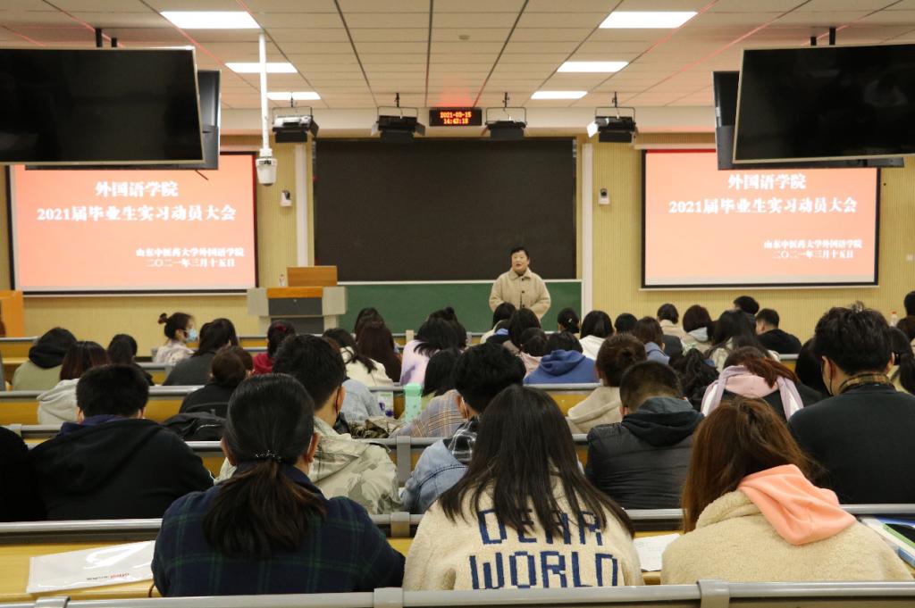 在长清校区31JT1教室召开2021届毕业生实习动员大会,教学副院长孙慧主持会议。院团总支书记、教学秘书、2021届全体毕业生参会。