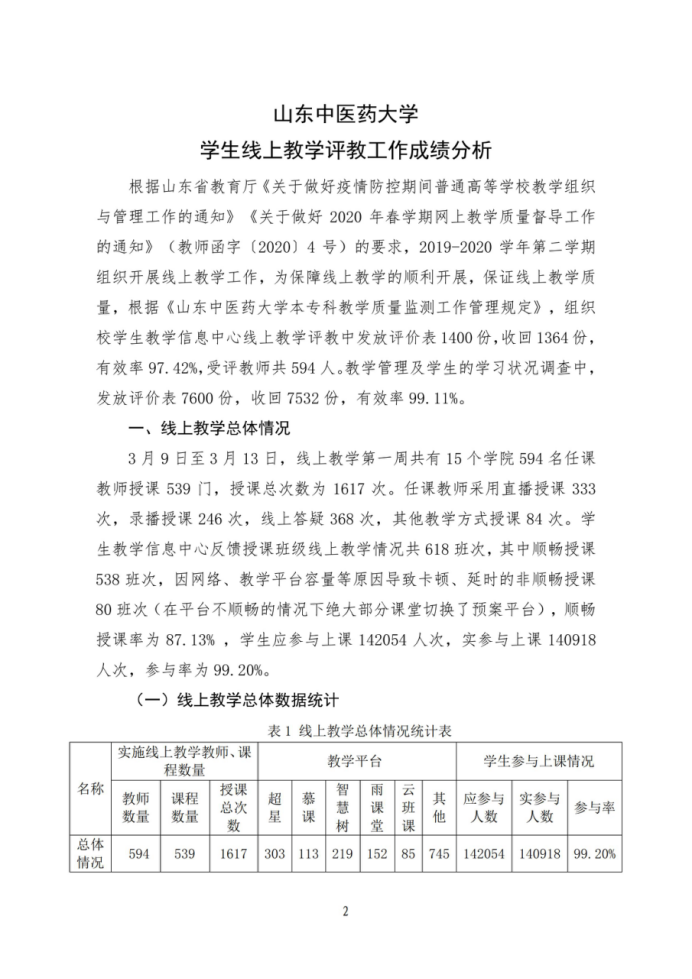 教学质量信息简报第二期(2019-2020学年第二学期第二周线上教学评教工作成绩分析)