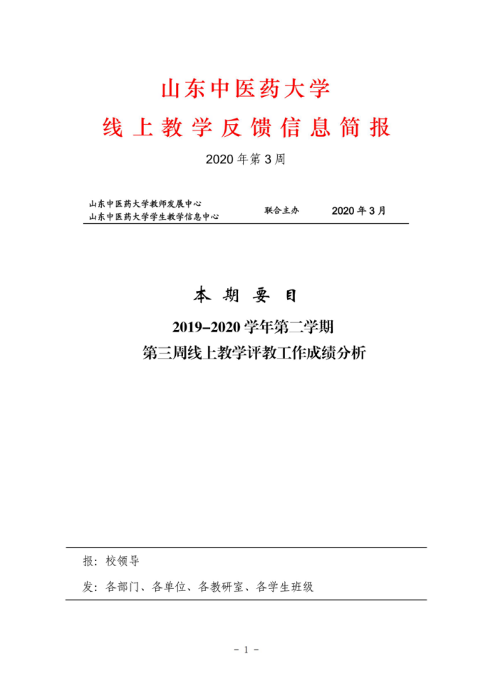 教学质量信息简报第三期(2019-2020学年第二学期第三周线上教学评教工作成绩分析)