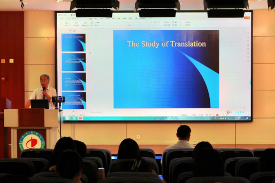 )杨辉教授在远方阁报告厅作题为“翻译学习与翻译硕士备考”的学术讲座。副院长陈战主持活动并作分享。