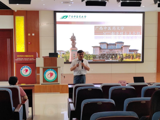 陈战分享对翻译工作的心得体会,还介绍了广西中医药大学、湖北中医药大学等多所院校的翻译硕士招生简章,叮嘱有意向考研的学生合理设定目标院校,制定可行的复习计划,提高复习效率,有效实现考研目标。