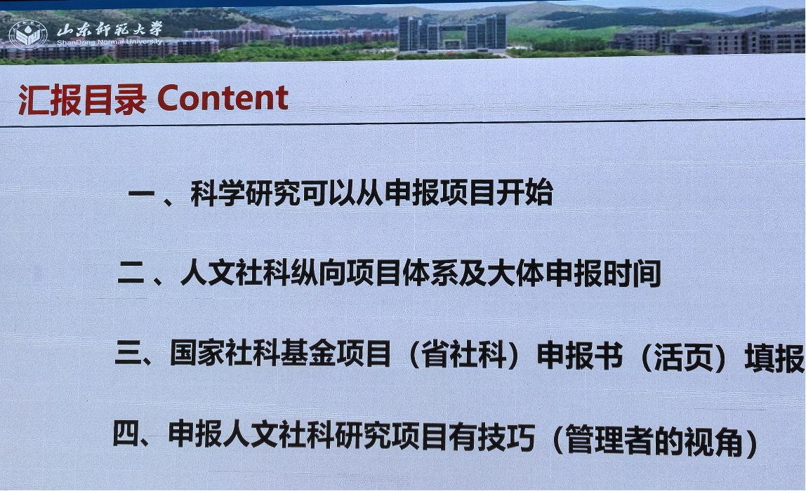 首先,顾大伟指出项目申报既对学科和专业建设大有裨益,又关乎教师评价考核等切身利益。从纵向项目的定义出发,详细梳理国家级、省部级、厅局级等相关社科项目及申报时间,介绍国家社科基金项目、教育部人文社科研究项目及山东省社科规划项目的评审流程