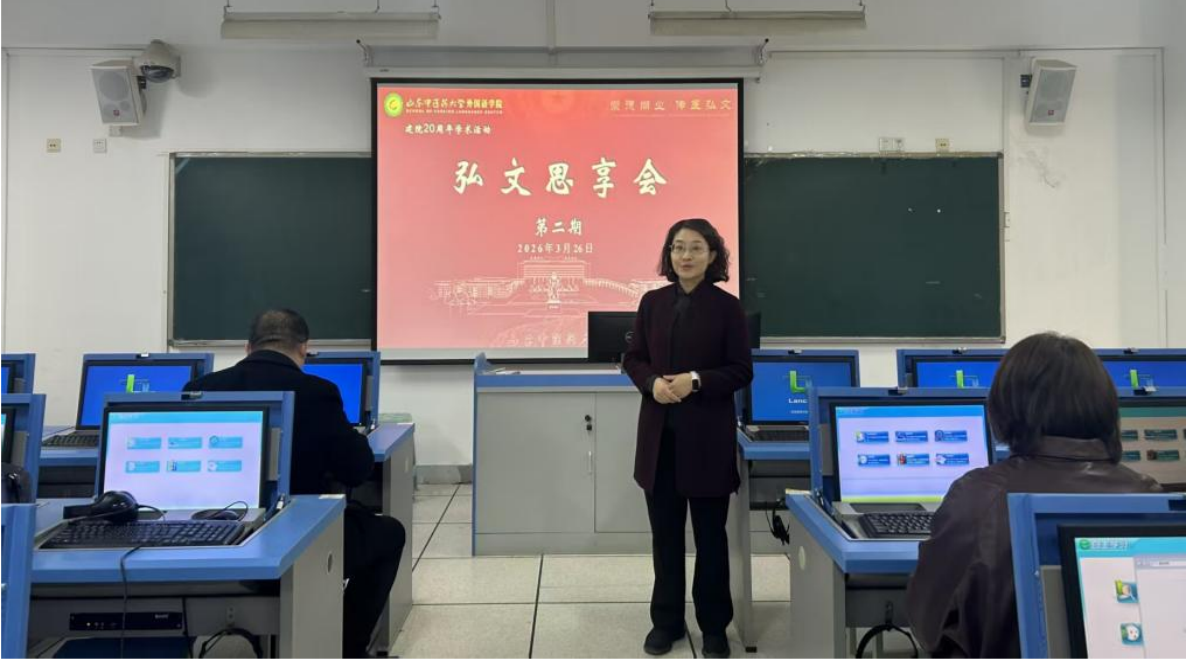 徐丽老师分享了她在山东大学进修的经历,重点介绍了该校大学英语课程设置,现场演示了通用学术英语授课模式,针对课堂教学设计、学生互动等实际问题,与在场教师进行了深入交流。此外,她还结合山东大学学生竞赛与教师科研成果,分享了自己在中医药拔尖人才选拔及中医药海外传播方面的研究心得。