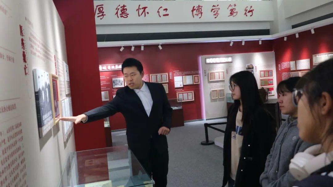 在讲解员的引导下,同学们透过展品重温历史。泛黄的老照片定格刘惠民青年时期投身沂蒙革命根据地创办红色医院的峥嵘岁月,工整的蝇头小楷医案手稿彰显“用药如用兵”的严谨态度,斑驳的铜质针灸器具与泛黄处方笺,诠释着老一辈医者“红色基因铸医魂”的精神图谱。