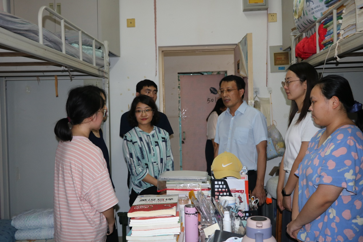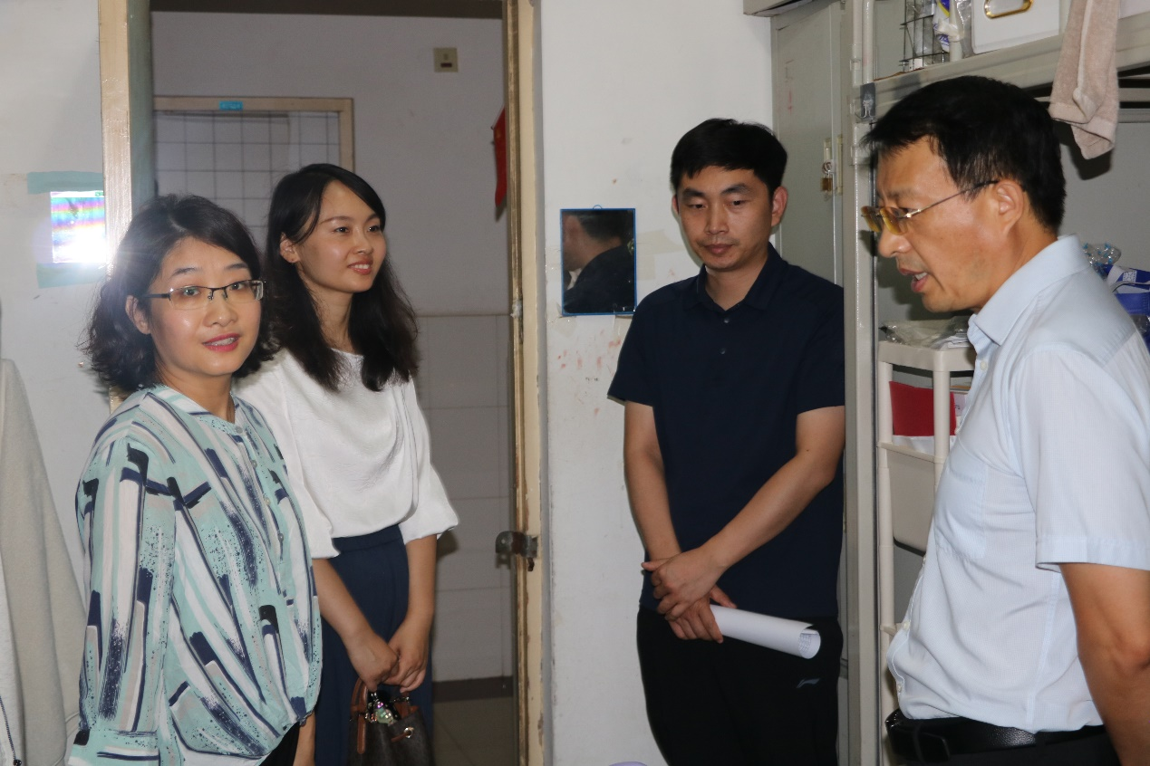 党委书记苏娜娜,院长李茂峰,党委副书记田原一行深入学生宿舍进行安全检查。