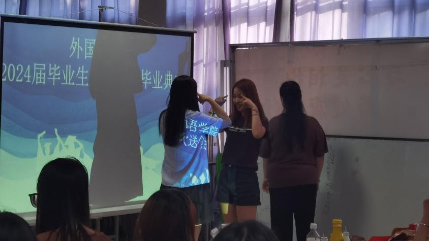 活动现场气氛热烈,大家进行即兴才艺表演、击鼓传花、“你画我猜”默契大挑战、“盲盒”抽礼物等活动,师生围坐一堂,共话四年情,展望未来景。