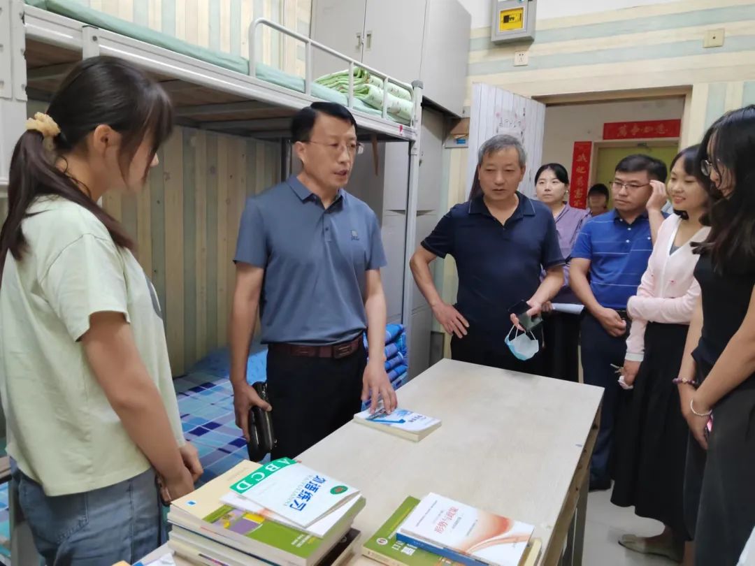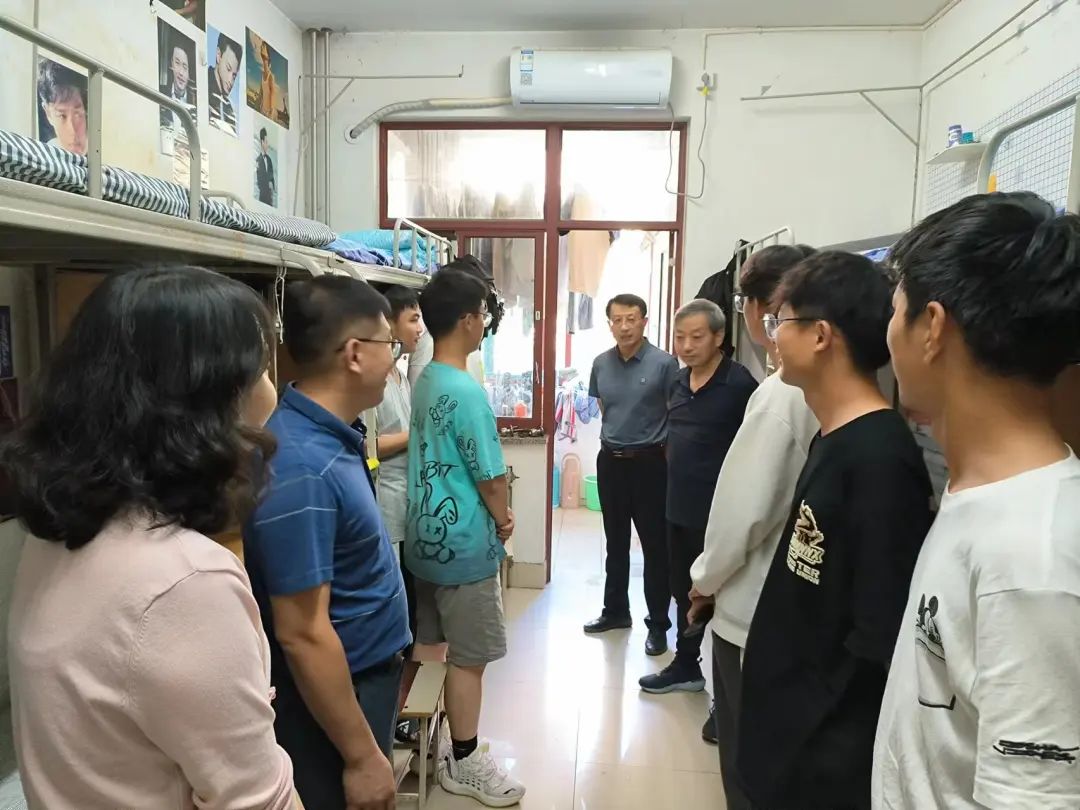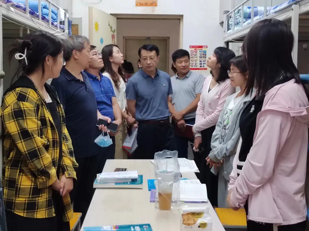 党委书记李子峰,院长李茂峰,党委副书记田原,副院长陈战以及各年级辅导员对宿舍进行全面的内务卫生安全检查。