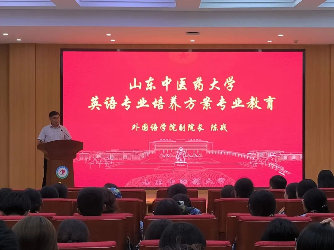 副院长陈战老师从“做什么、如何做”方面对英语专业教育进行讲解,提出同学们要对英语有信心,对天美传媒