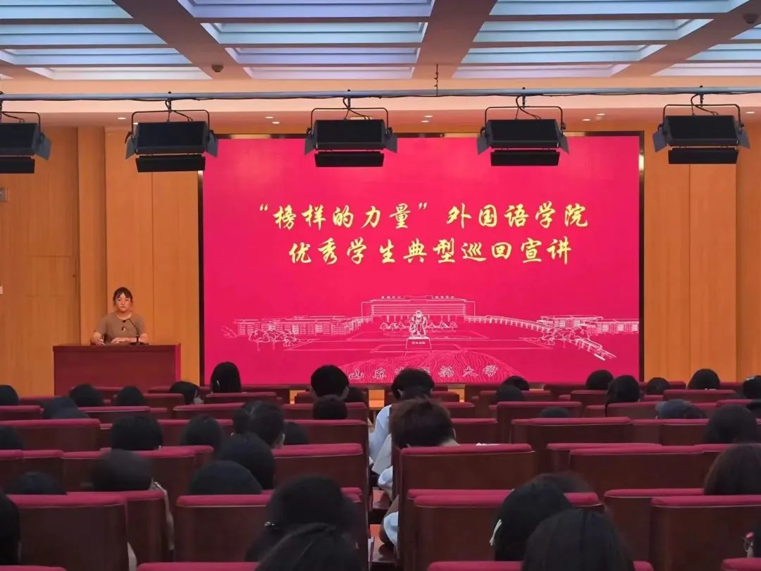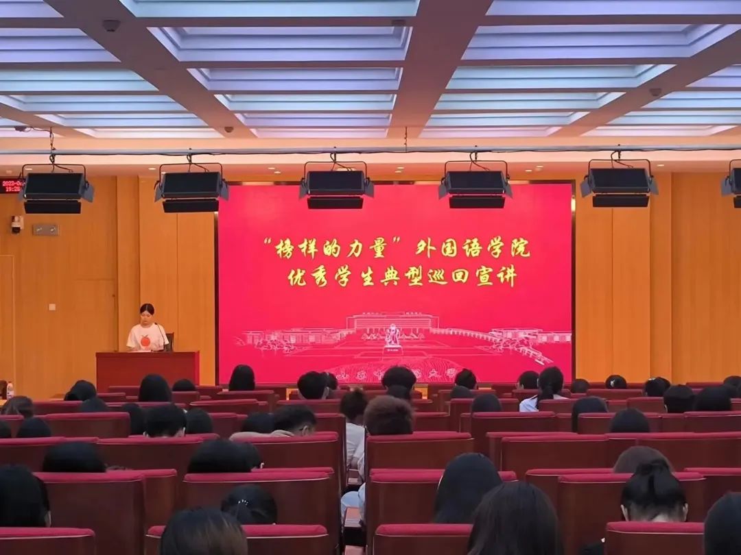 于三教第二报告厅举办“榜样的力量”优秀学生典型巡回宣讲。天美传媒