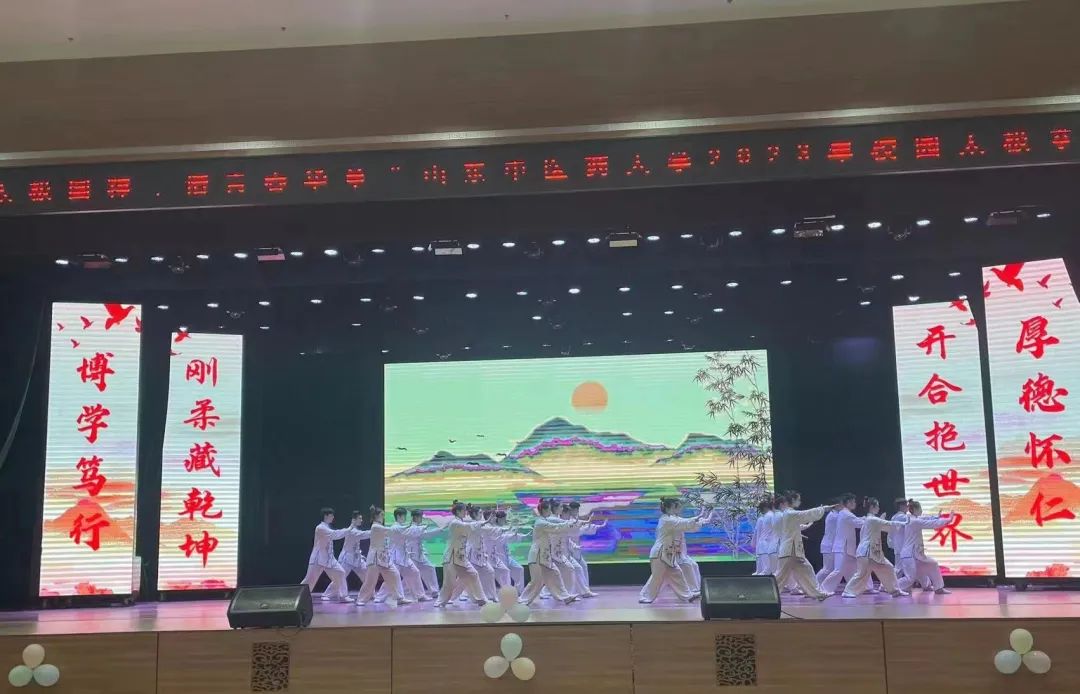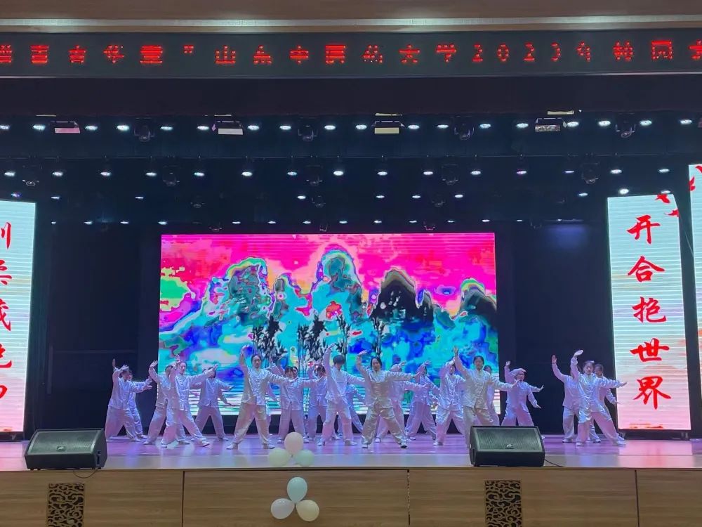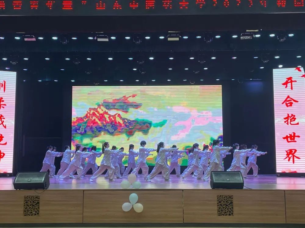 伴随着太极拳舒缓的音乐,各院队伍整齐划一、精神抖擞,结合自身特长以不同形式展现太极文化的魅力。各参赛队员一招一式如行云流水般,将太极拳中正安舒、开合有序的特点演绎的淋漓尽致。“行道劲于儒雅,寓刚健于婀娜”,一动则周身无有不动,一静百骸皆静,舒缓之中扬白鹤亮翅,方寸之间展太极魅力,同学们熟练自然的表演令在场的领导和观众不由鼓掌赞叹。