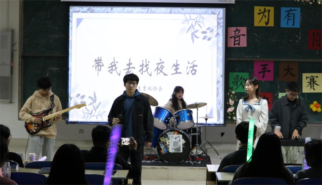 选手们表演结束后,大学生吉他协会带来表演《带你去看夜生活》,优秀奖代表高涵带来歌曲《外婆桥》,为比赛增添了一抹更亮丽的色彩。