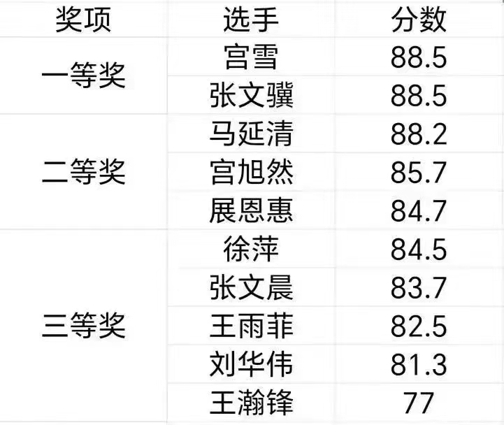 青春似曲,青春如歌。经过比赛的的激烈比拼,以下是本次决赛的结果。