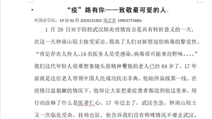 (团员通过写作为战“疫”英雄加油)