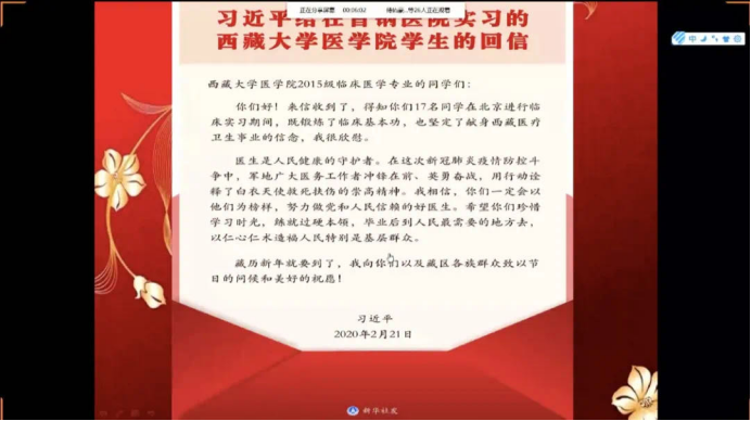 团结齐心,共克时艰。支部开展“众志成城,从我做起”线上主题团日活动,组织学习《习近平总书记给在北京大学首钢医院实习的西藏大学医天美传媒