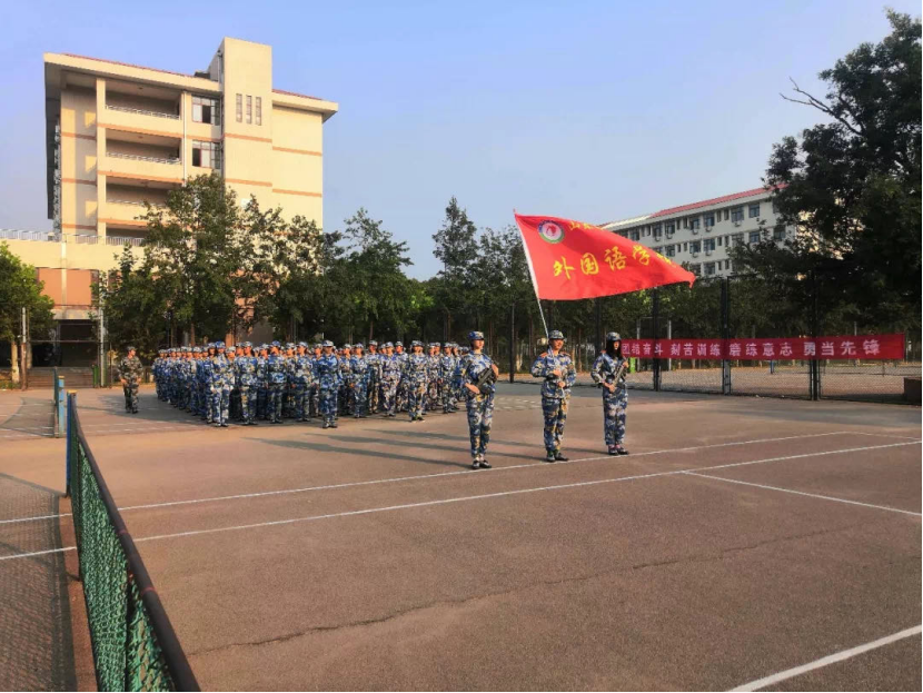 2019级军训汇演在北操场举行,新生们迎着朝晖,激情飞扬,向天美传媒