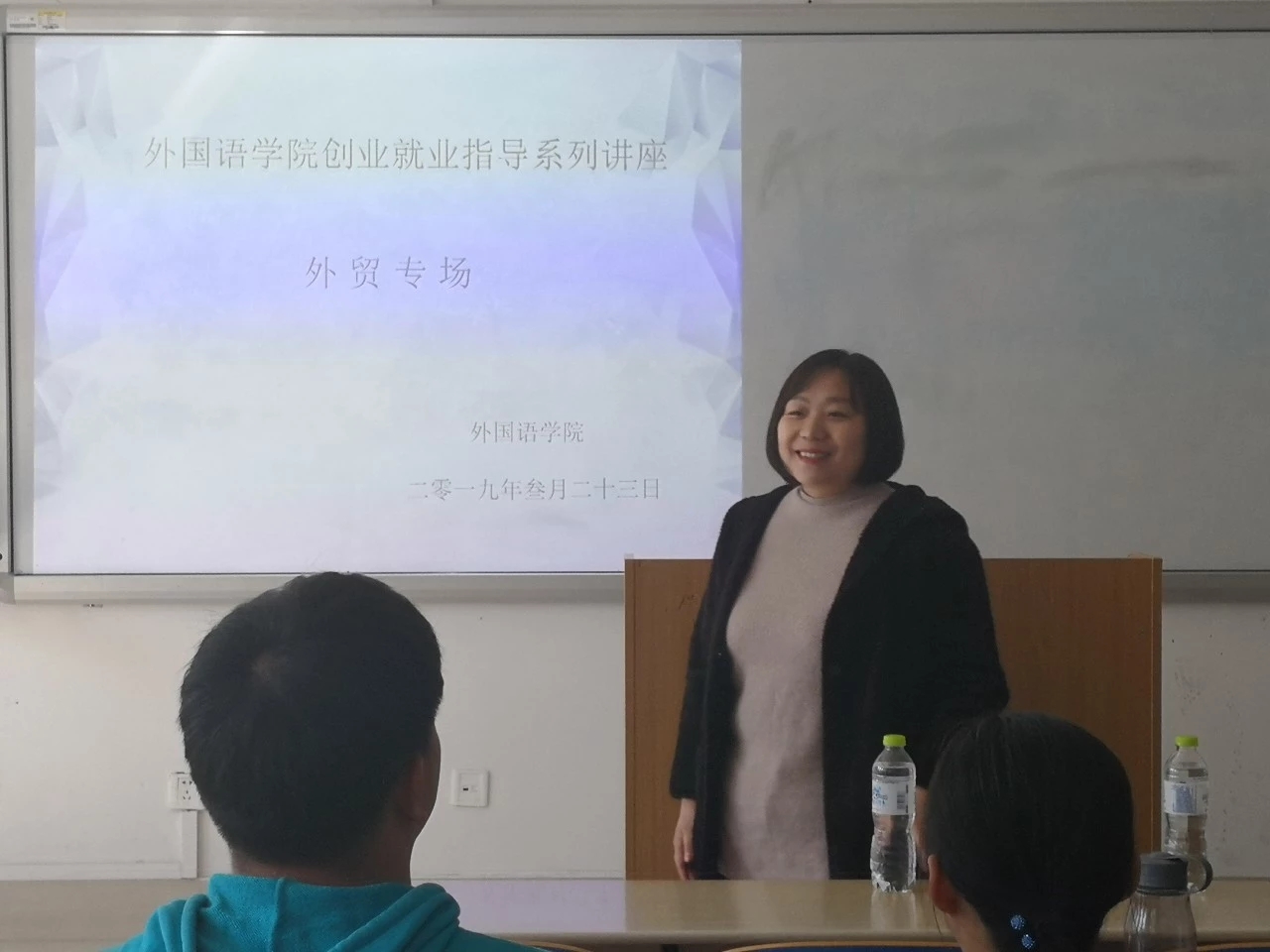 本次的讲座,使同学们对外贸行业现阶段的成就和未来的发展有了初步的认识,为以后的就业择业指明了方向,同时有利于提高同学们在创业实践活动中自我生存和自我发展的能。