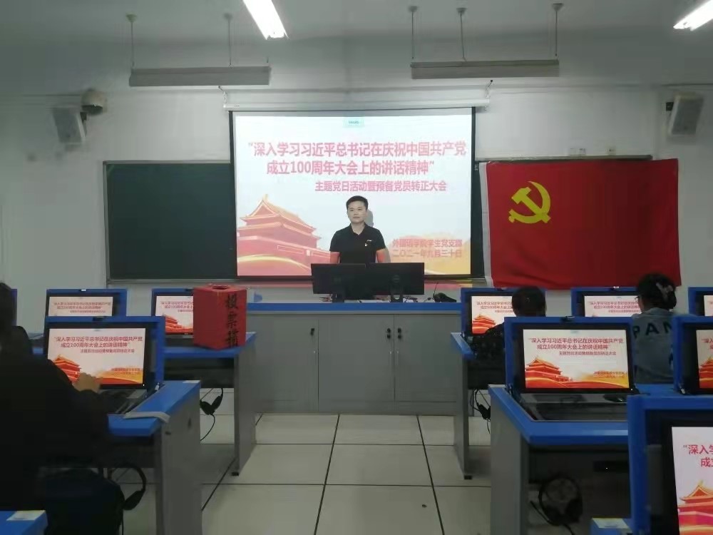 学生党支部于一教二议号语音室召开预备党员转正大会。学生党支部书记李耀东主持会。